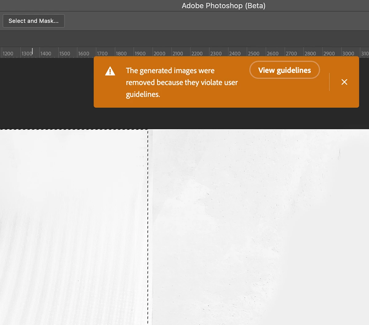@Pete.Green does your team still need more examples of non relevant warnings about guidelines violation? I get dozens of them every day, for nothing, when trying to generate some blurry backgrounds on my macro shots. I will be more than happy to provide examples if it will help to improve the tool. The generative fill is extremely needed and welcomed in macro photography and currently it is really painful and frustrating to use it and to get this warning in 90% of cases.