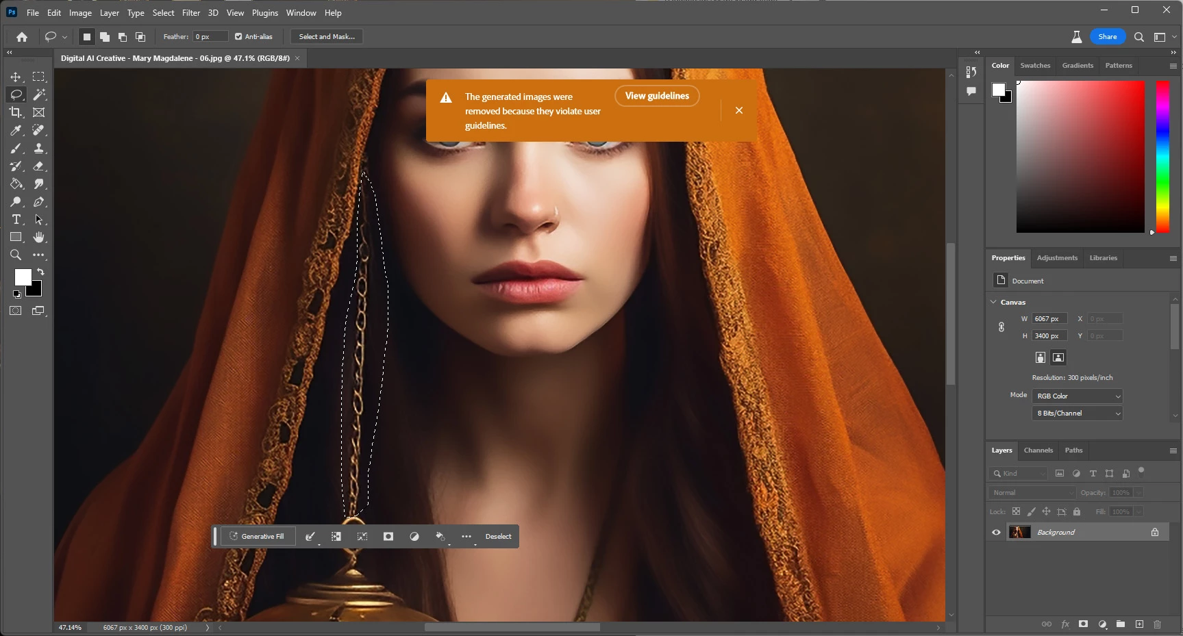 *edit: I do like the gen fill a lot, it works great when it works. I just don't understand why there is so much violations happening, and what it is that I can possibly do to avoid it (legitmately).