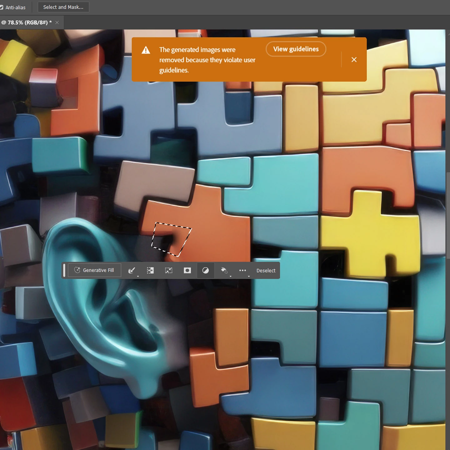 The error pops up so often that the AI generative fill is pretty much unusable at this point.