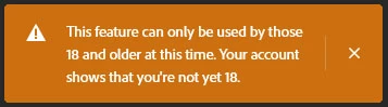 I keep getting an error saying I'm unable to use the new feature because I'm not over the age of 18.  I'm 35 years old and have been using Photoshop for years! What on earth? How do I change this so I could use this awesome new AI feature everyone is talking about?