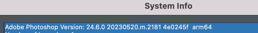 "1. Both the previous and the most-recent version of the Photoshop Beta are 24.6.