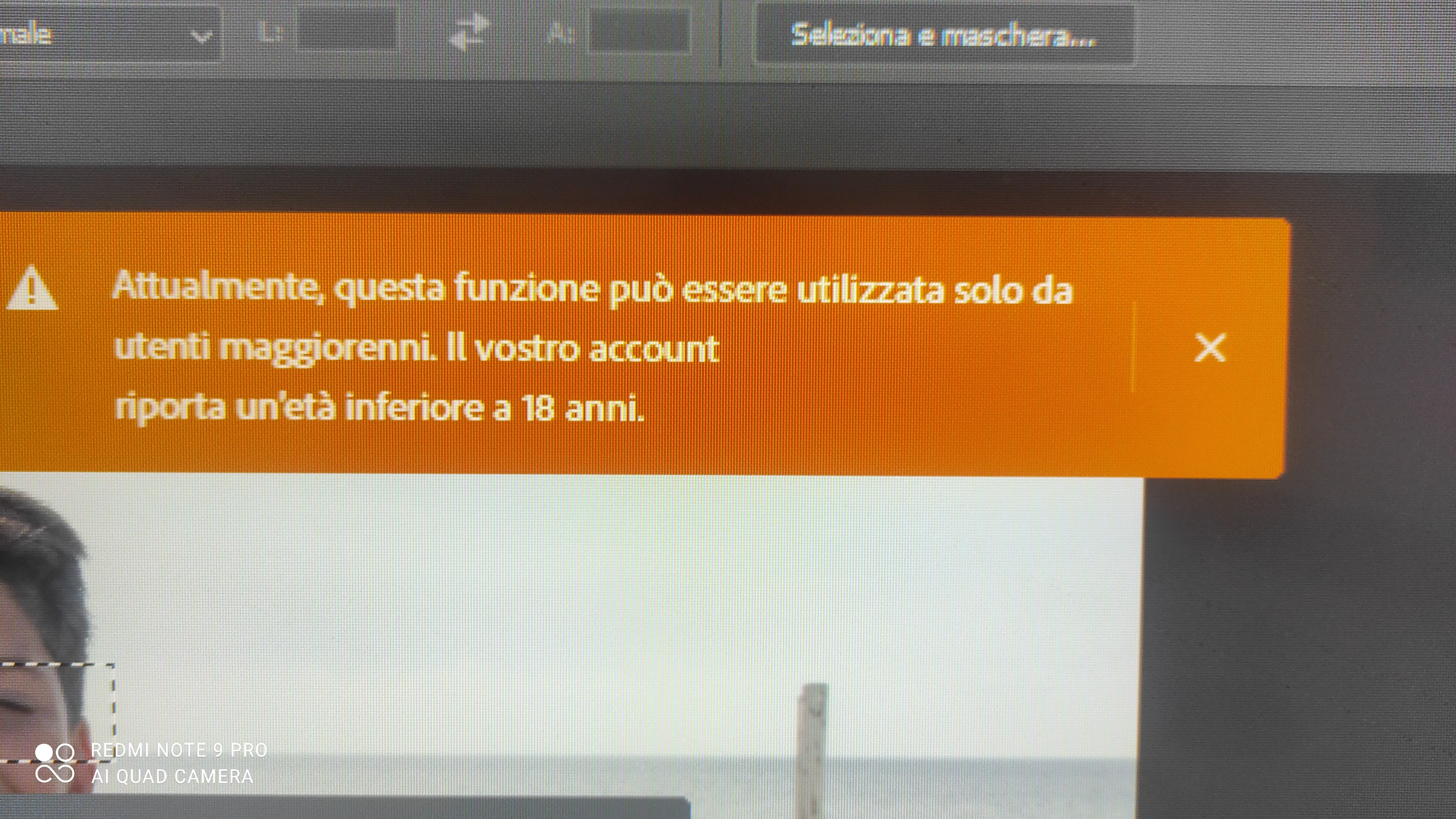 sto provando la nuova versione beta ma il tasto "riempimento generativo" è disabilitato mi dice che i dati del mio account è di un minorenne sotto i 18 anni ma non è vero.