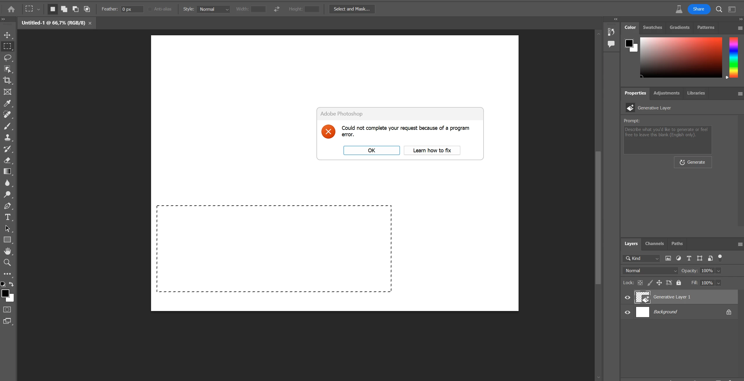P: Generative Fill Not Working on PS Beta (Program Error)