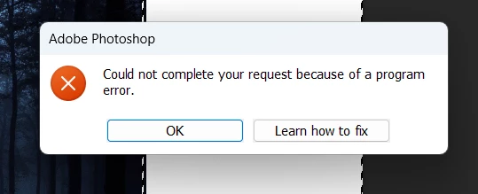 P: Generative Fill Not Working on PS Beta (Program Error)