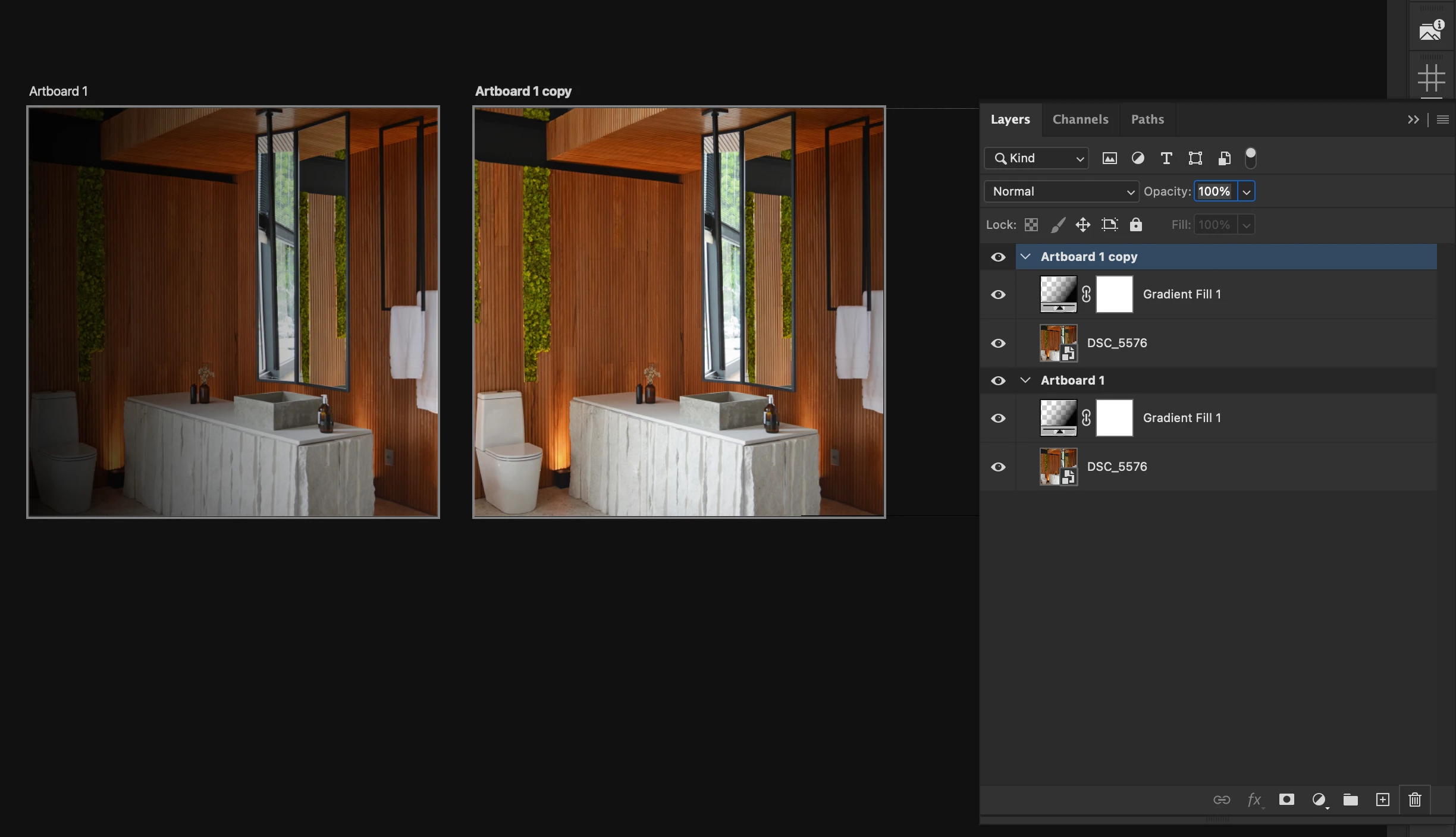 - If you're using artboards and have content outside the bounds of the artboard, the gradient will size to that, rather than to the artboard