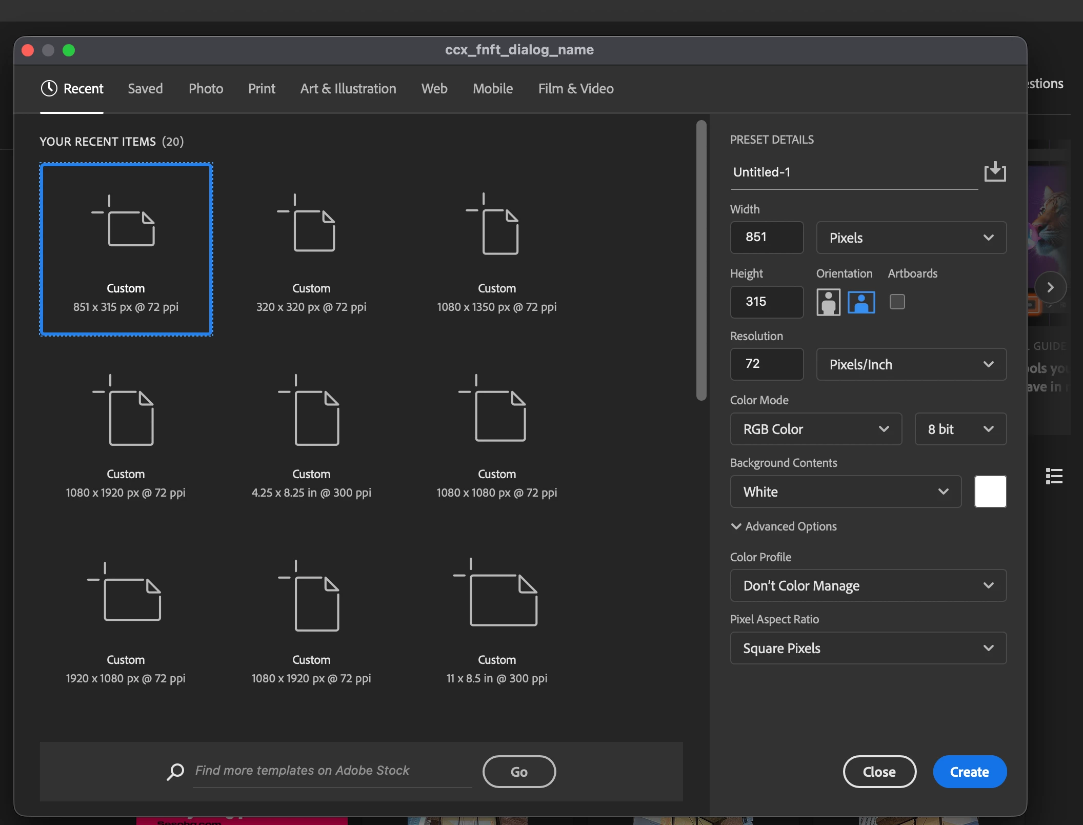 the defaut size are 800x500 px. at the moment I want to change from pixel to millimeters. Photoshop 27.4 crashs immediately