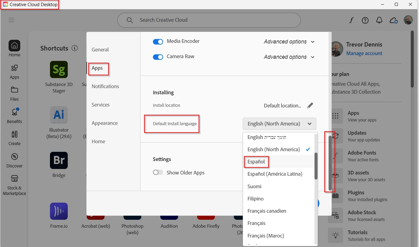 EL sistema me aparece que si esta configurado en español latinoamerica, pero todo el programa aparece solo en ingles, intento actualizarlo y no se puede, se mantiene en ingles.