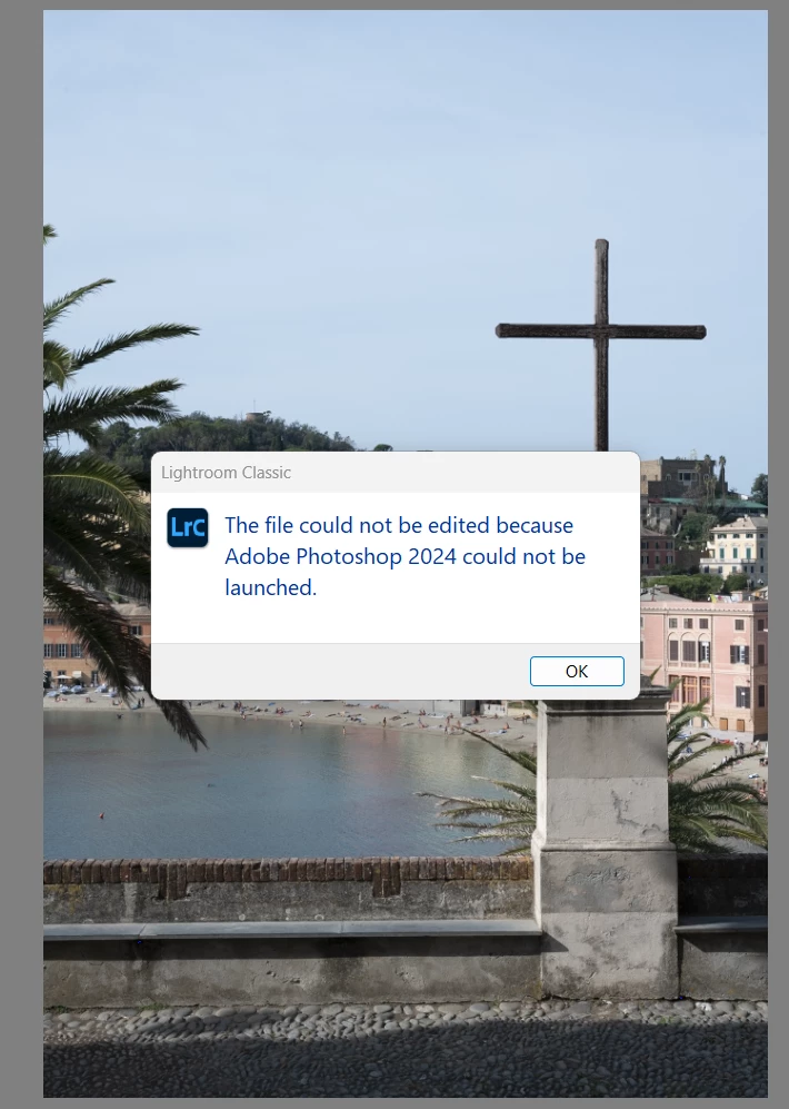 Now when I try to open photos from LR 12.4 using the "edit in...", it hangs up for a time and then comes up saying "The file could not be edited because Adobe Photoshop 2024 could not be launched."