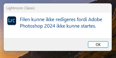 Now when I try to open photos from LR 12.4 using the "edit in...", it hangs up for a time and then comes up saying "The file could not be edited because Adobe Photoshop 2024 could not be launched."