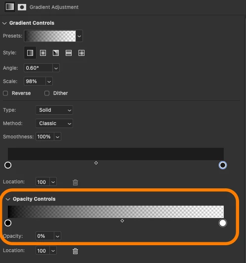 Gradient slider (the diamond in the middle) doesn't work on a foreground to transparent fade
