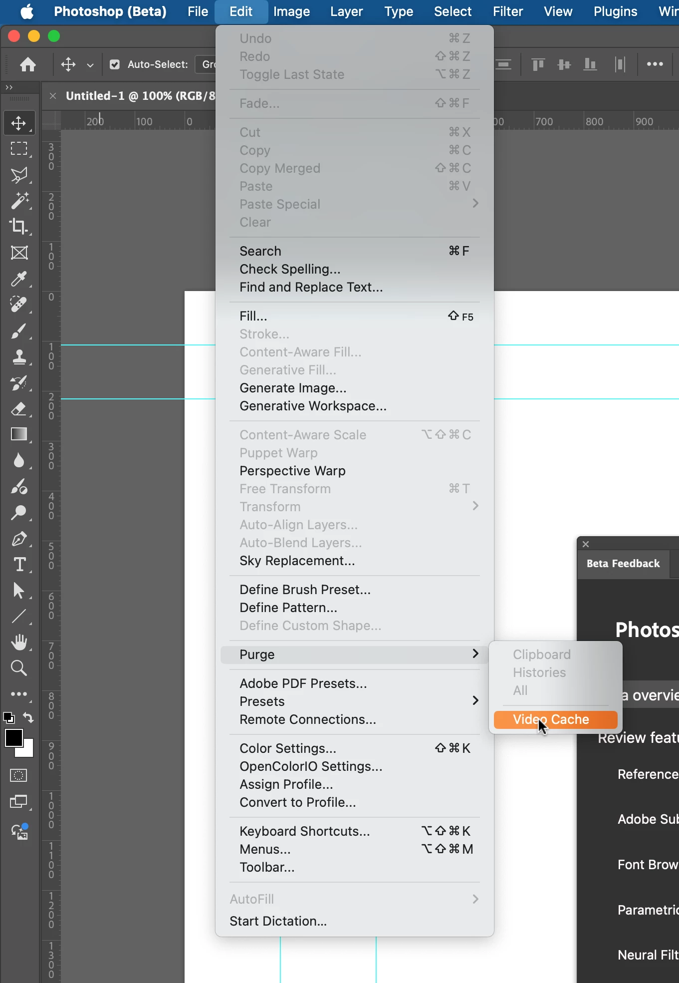 P: Photoshop Beta 26.1.0 Crashes on Purging Video Cache