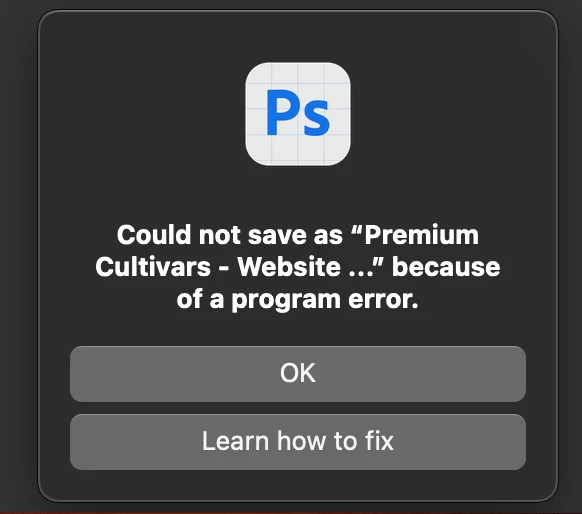 Step 3 save file > Could not save "file-name.psd" because of a program error