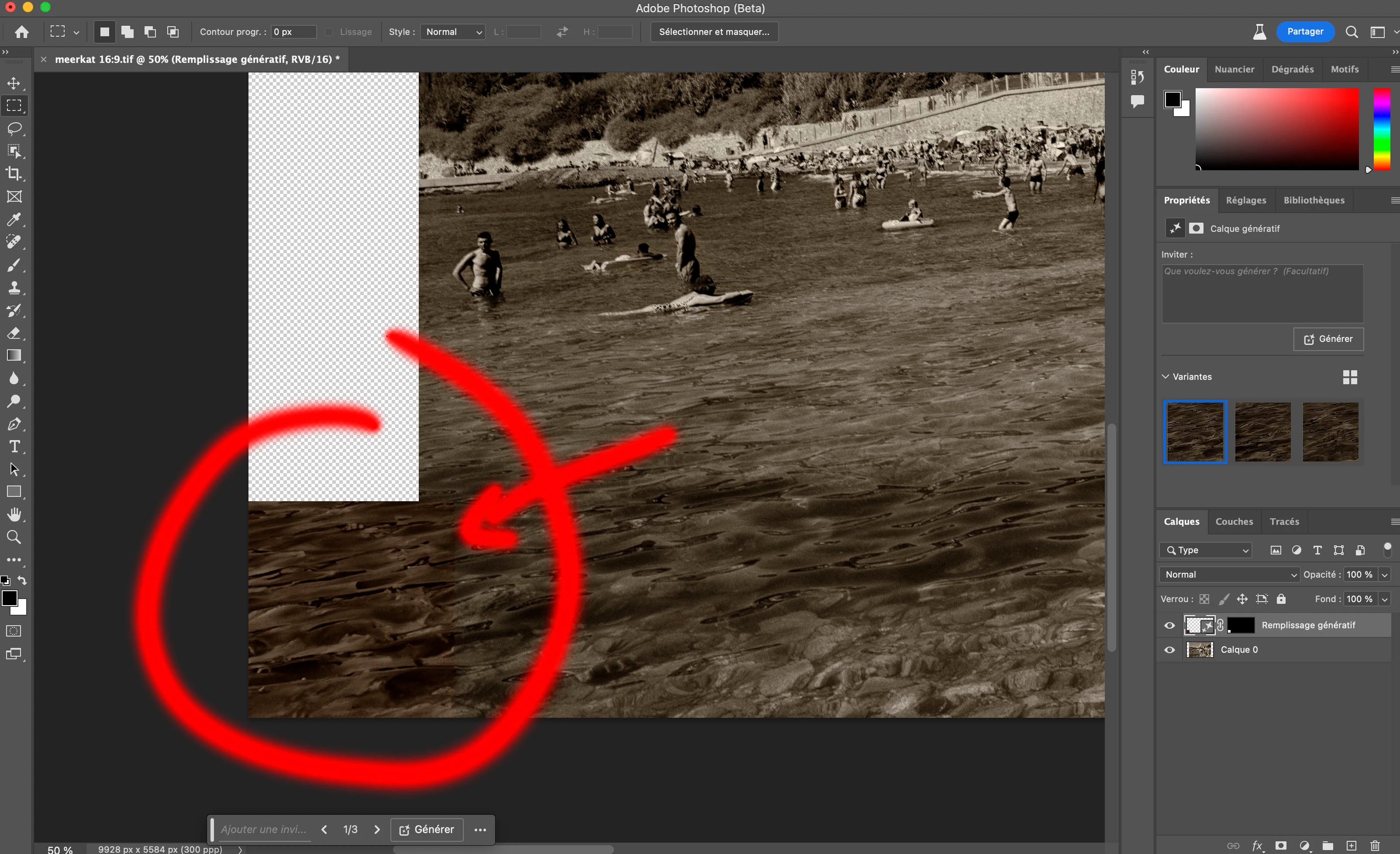 P: Photoshop Beta Generative Fill produces different colors at the edges of the selection.