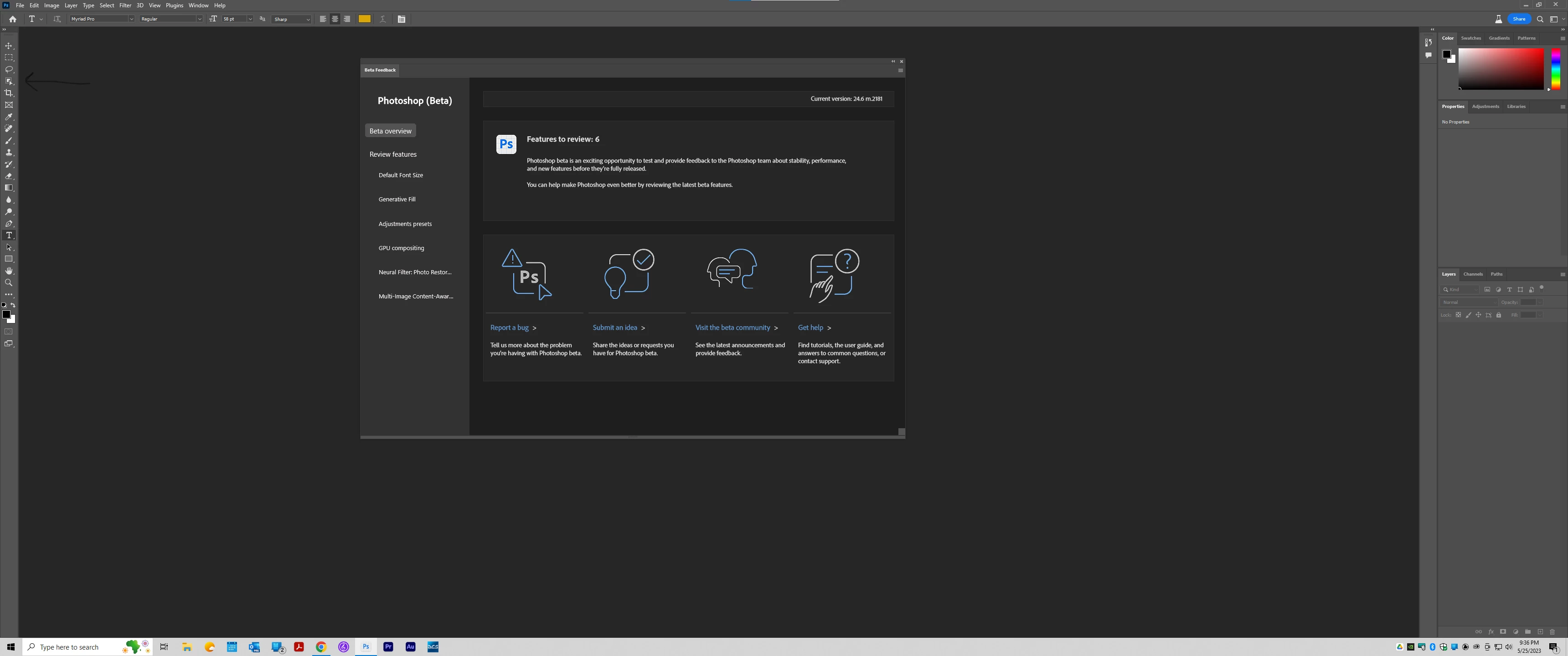 I downloaded the latest Photoshop Beta as of today. I used the Generative AI and decided that the selection was not as specific as I wanted, so I went to hover over the selection tool to choose a tool and the machine immediately reboots. I have duplicated this problem.
