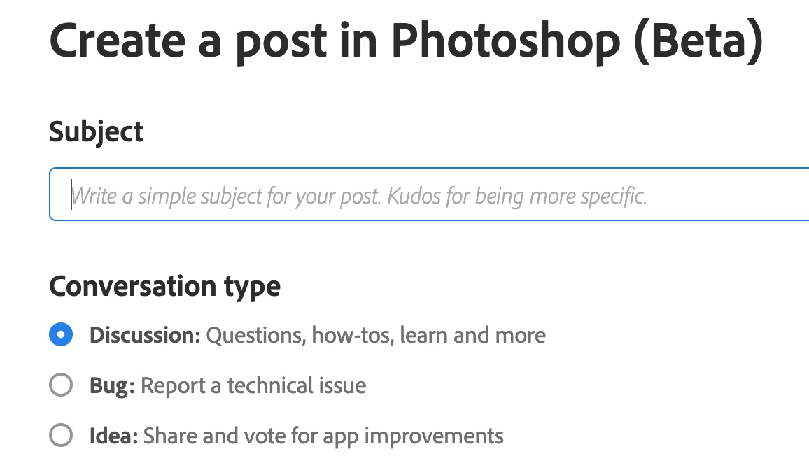 The Photoshop "ecosystem" does not use UserVoice. For Photoshop Beta the correct way to make a feature request is to start a new post and select "Ideas" for the Conversation type.