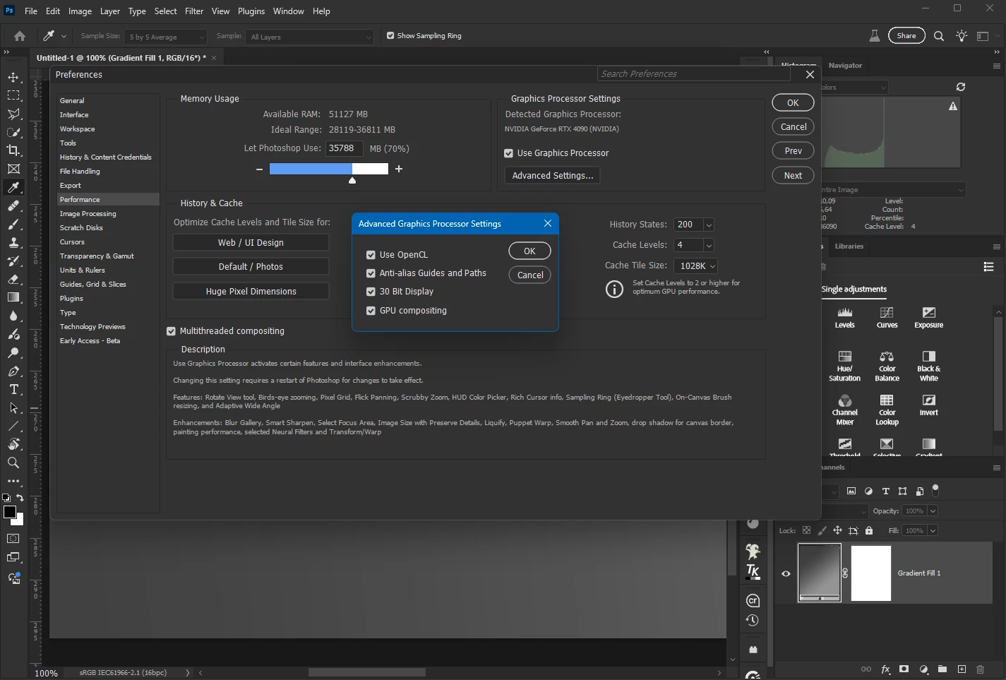 Für Photoshop verfügbarer Arbeitsspeicher: 51127 MB