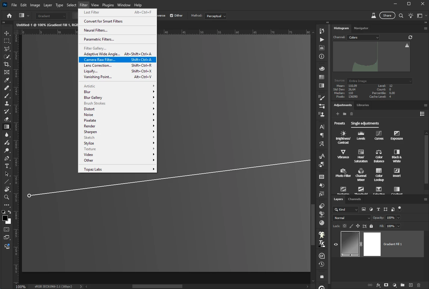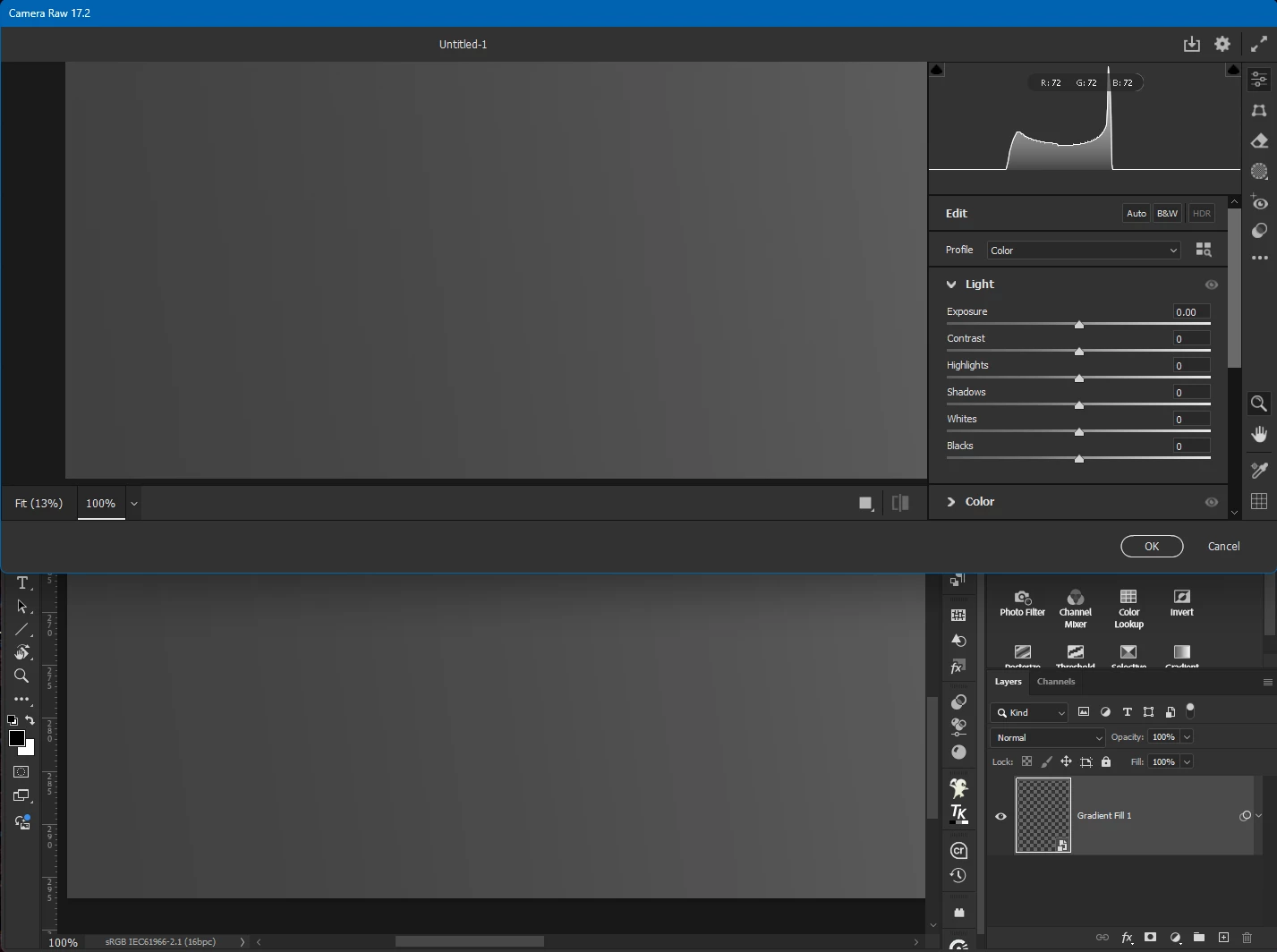 If you use the Camera RAW filter on this picture the gradient is displayed very smooth without banding.