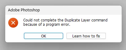 P: Photoshp Beta (25.4.0.2439) Program Error when Duplicating Layer to different document