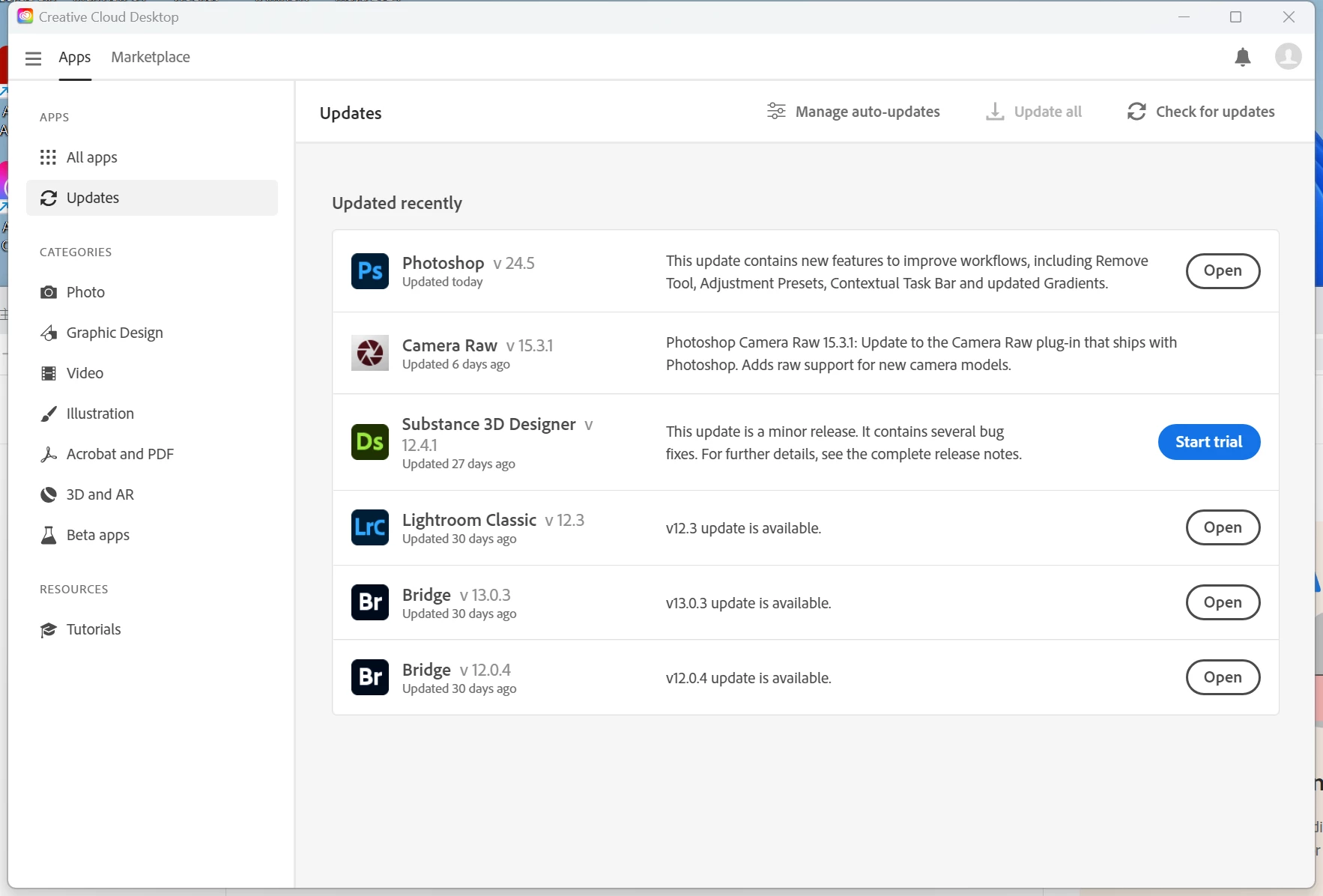 I'm stuck on 24.5 version of photoshop. i have been refreshing the updates in creative cloud and it keeps telling me photoshop is up to date. all my collegues have sucessfully installed the 24.6 version, but it's just not giving me the new version.