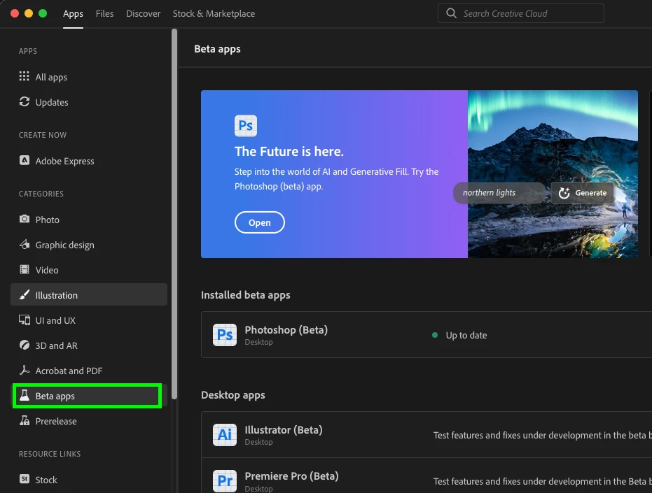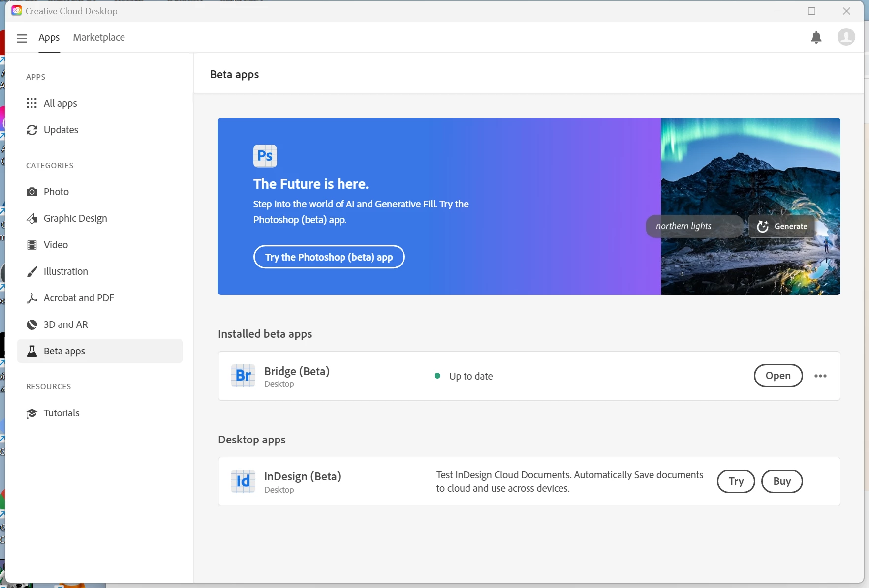 Also I clicked Beta apps tab, there is no V24.6 either, and while I clicked 'Try the Photoshop(beta) app', nothing happened.