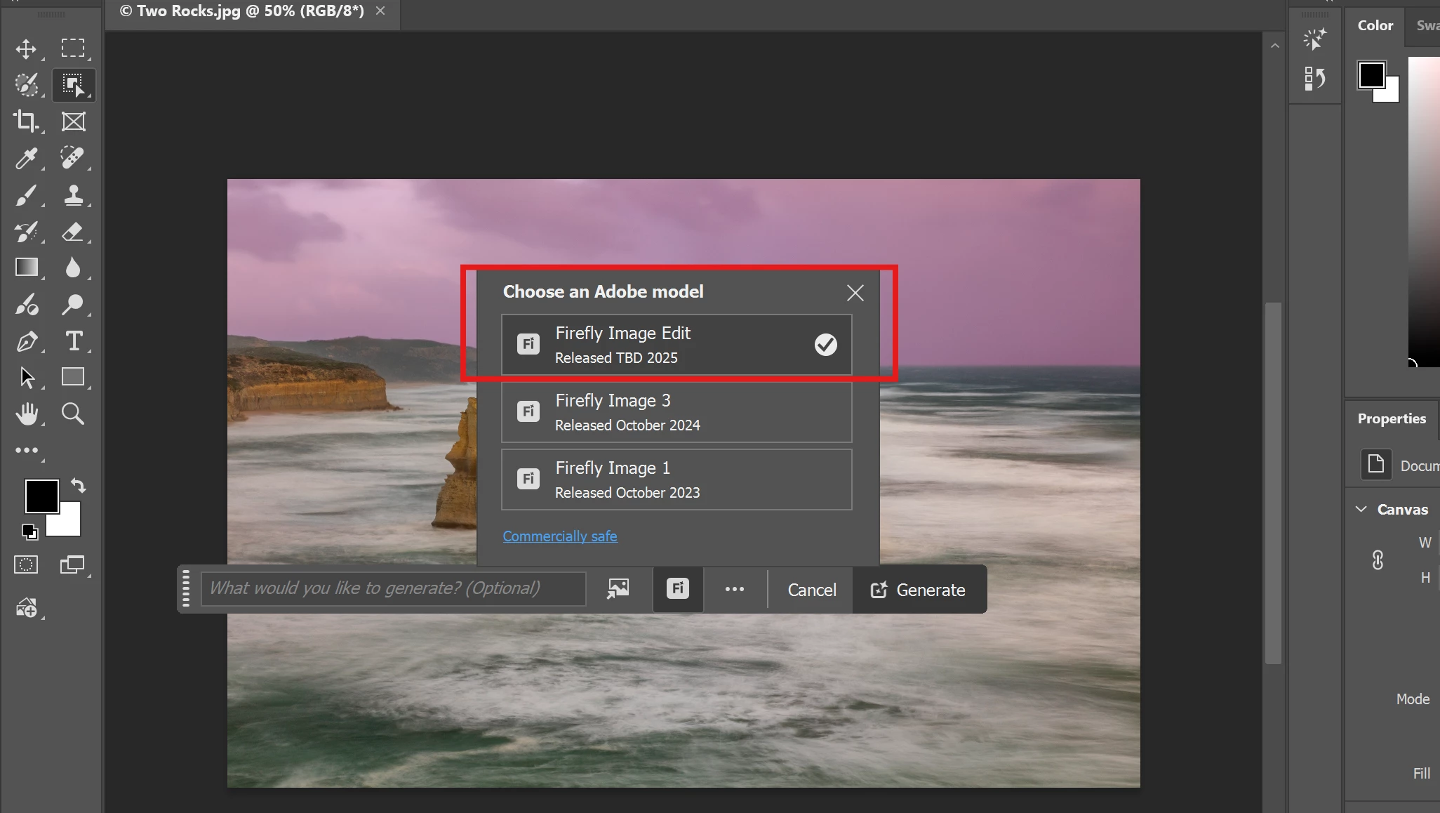 2) Choose the "Firefly Image Edit" as the Firefly model for gen AI (screenshot for reference).
