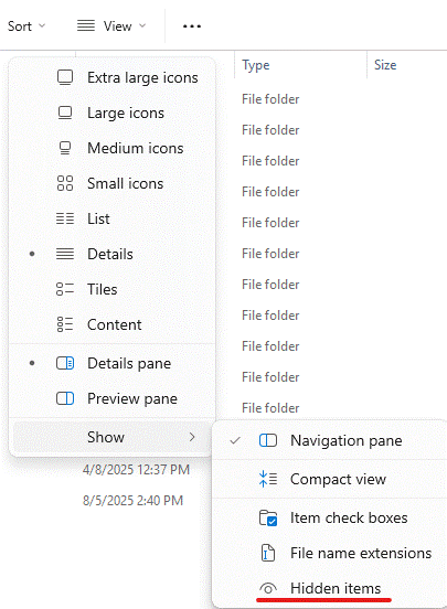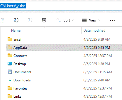 If you don't see the "AppData" folder, go to the View menu and select Show > Hidden items.