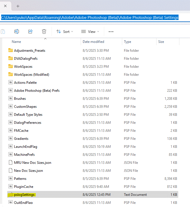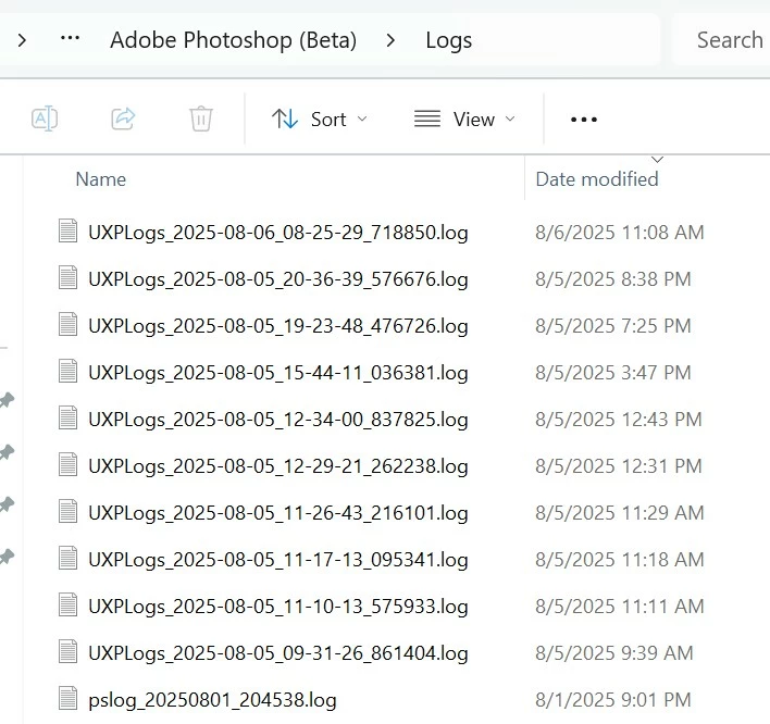 At the C: appdata > roaming > adobe path I see a variety of Logs types since my Aug. 1 update from 26.6 beta rel. (in which Remove Tool worked with my implementation - plugins, etc.) to the 26.10 beta rel. (in which Remove funcs. fail - as they did in 26.8-9 also). Some prefixes are UXPLogs as well as the one pslog_  See snip. To clarify - you're only interested in the 8/1 "pslog_"? Or, most recent UXPLogs_?  Thx.