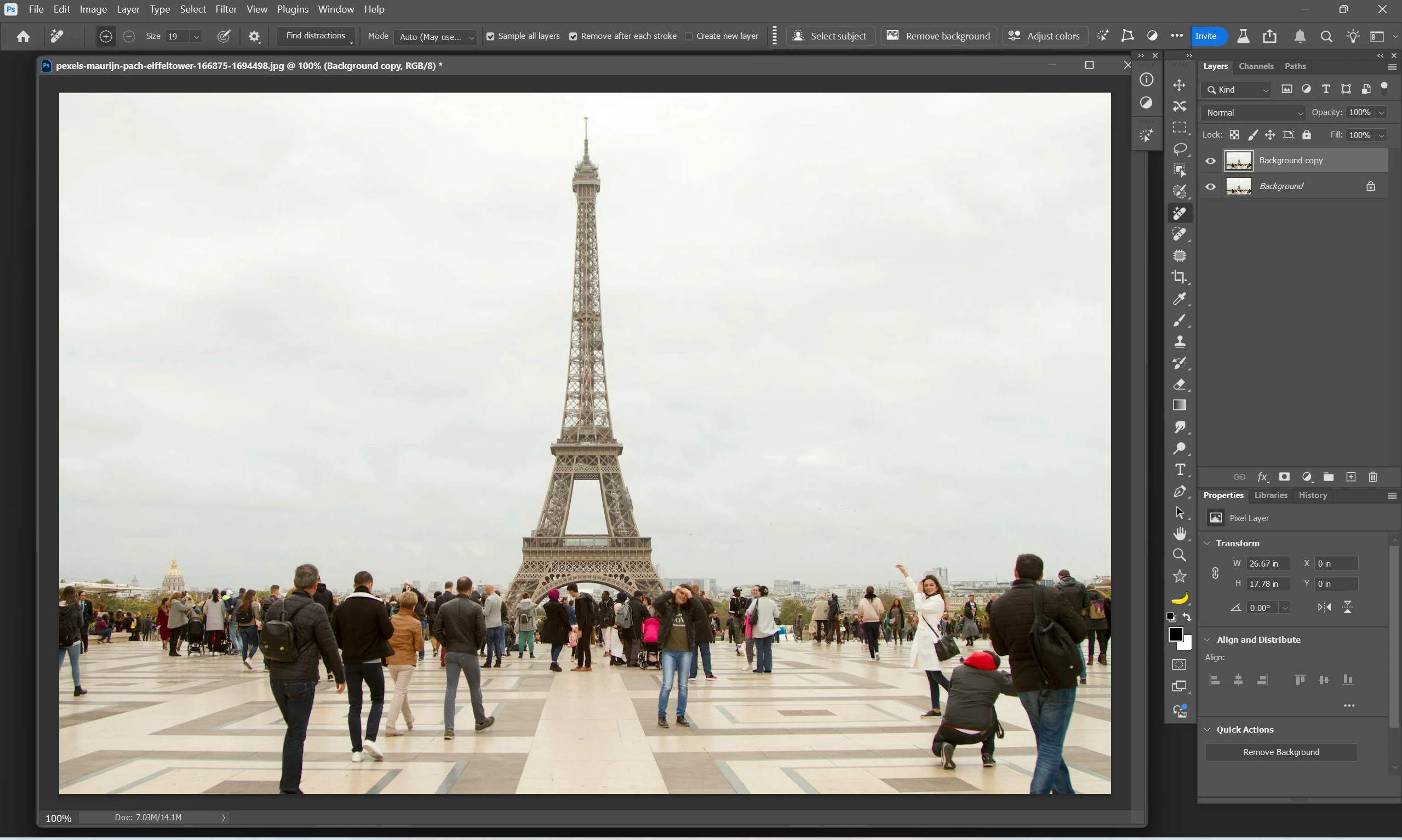 4. Open an image with many people and try People distractor removal by opening the [Find distractions] in the Remove Tool option bar and clicking [People]. Does it highlight the destructive people without the error?