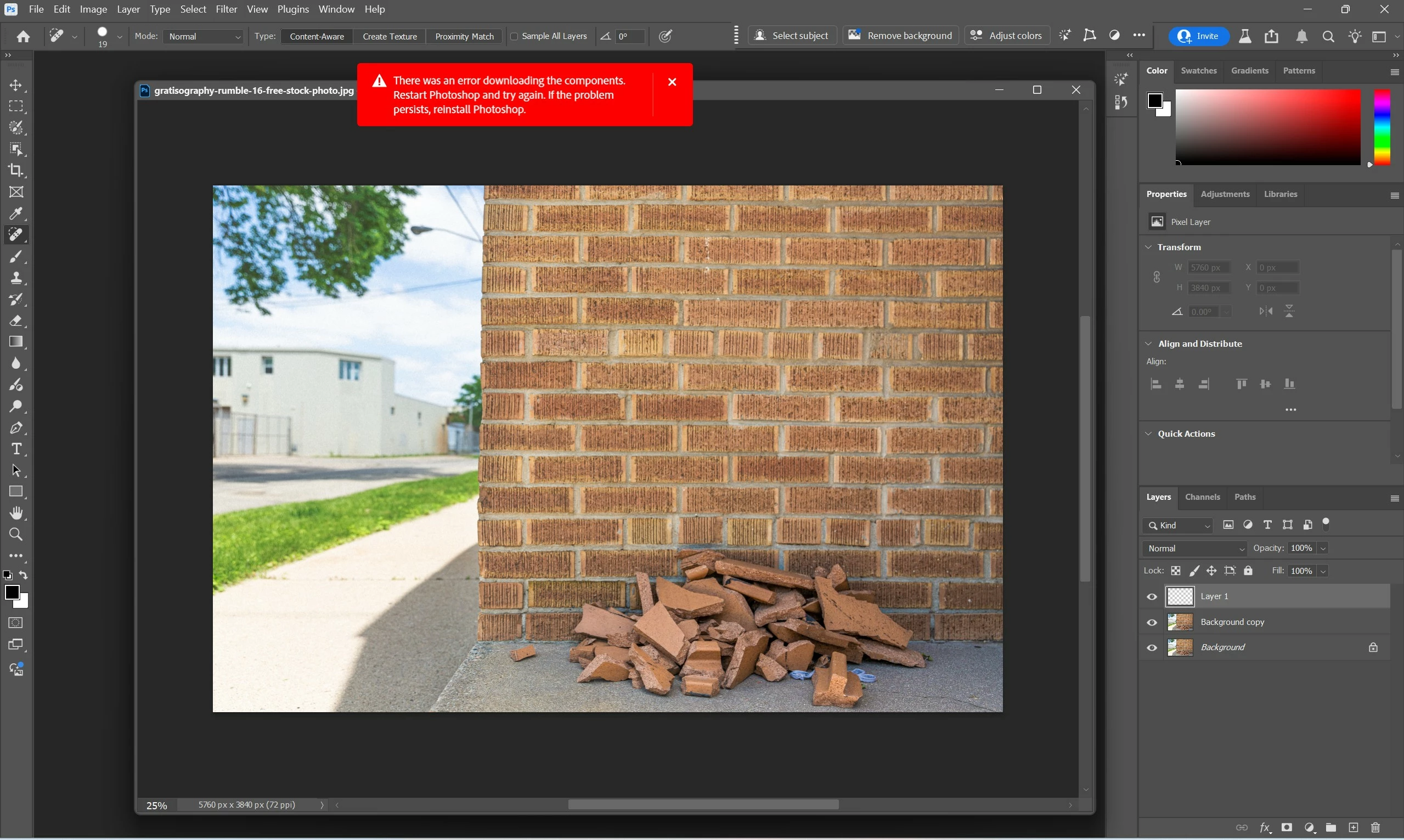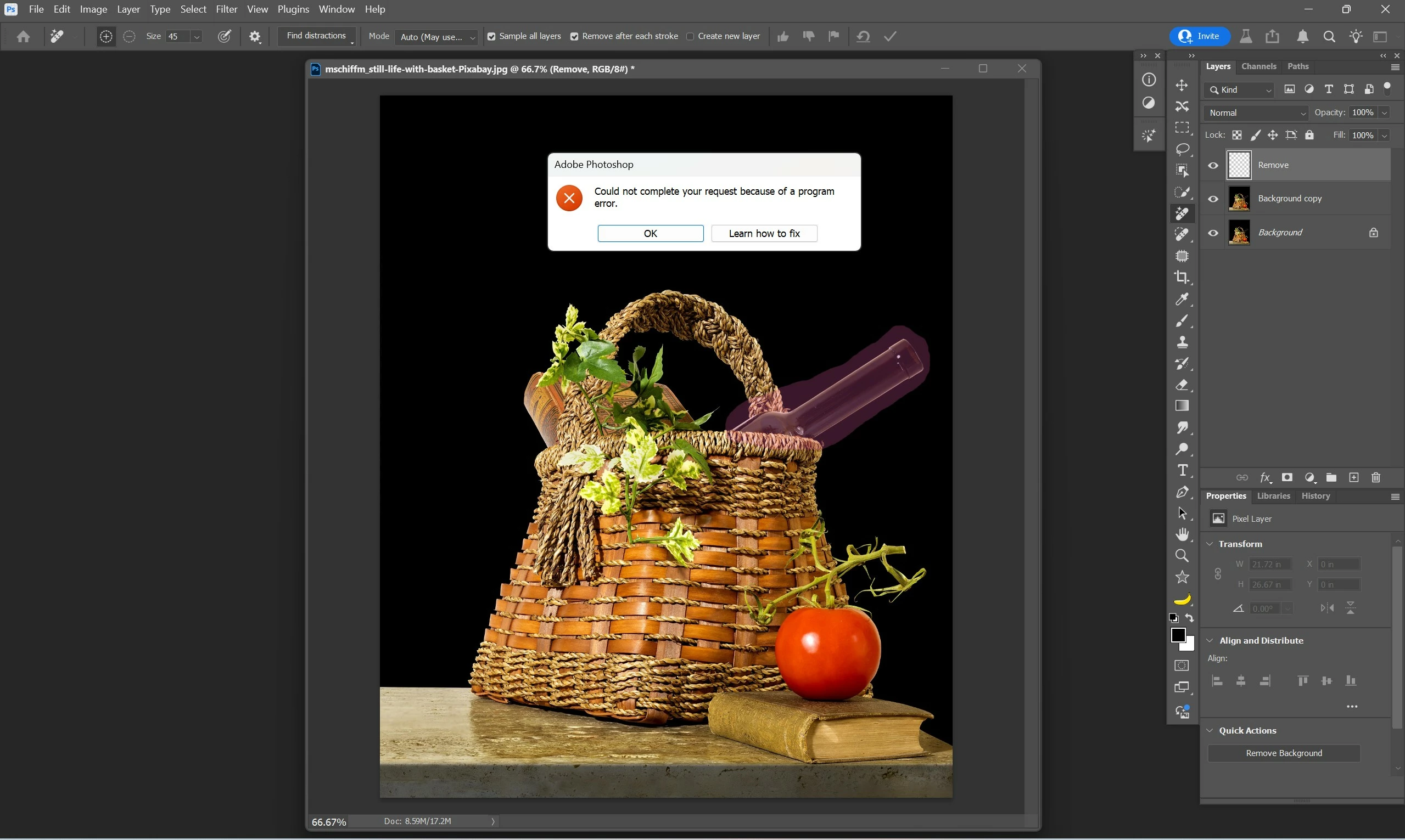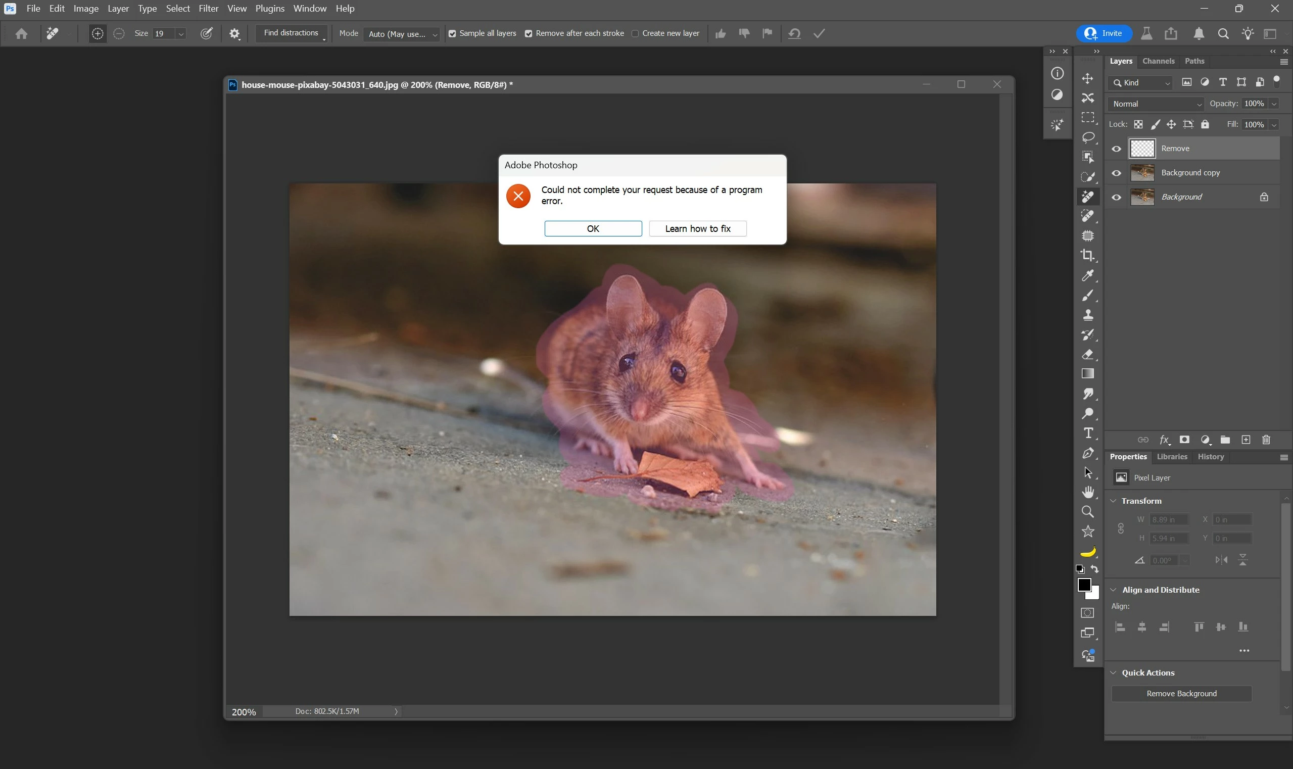 When attempting to brush a remove area or using the Contextual Task Bar it results in an Error.