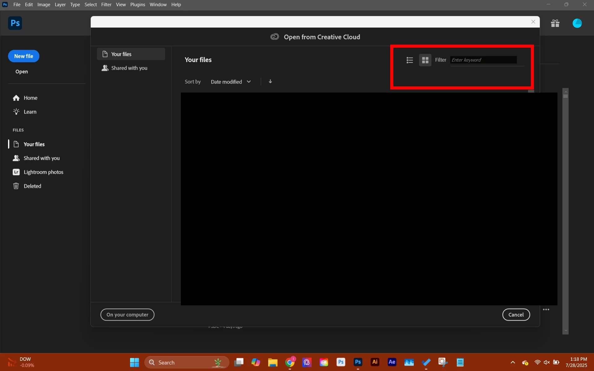 Photoshop beta 26.9 seems to be missing the "Search / Filter by name" field on the home screen and files tab. Any word on when we might see this added back? It was really nice to be able to search for my cloud PS files by name in the home screen UI, now I have to scroll through them all with no option to search by name.