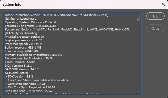 Adobe Photoshop Version: 26.11.0 20250918.r.18 a87e57f x64 (final, Release)