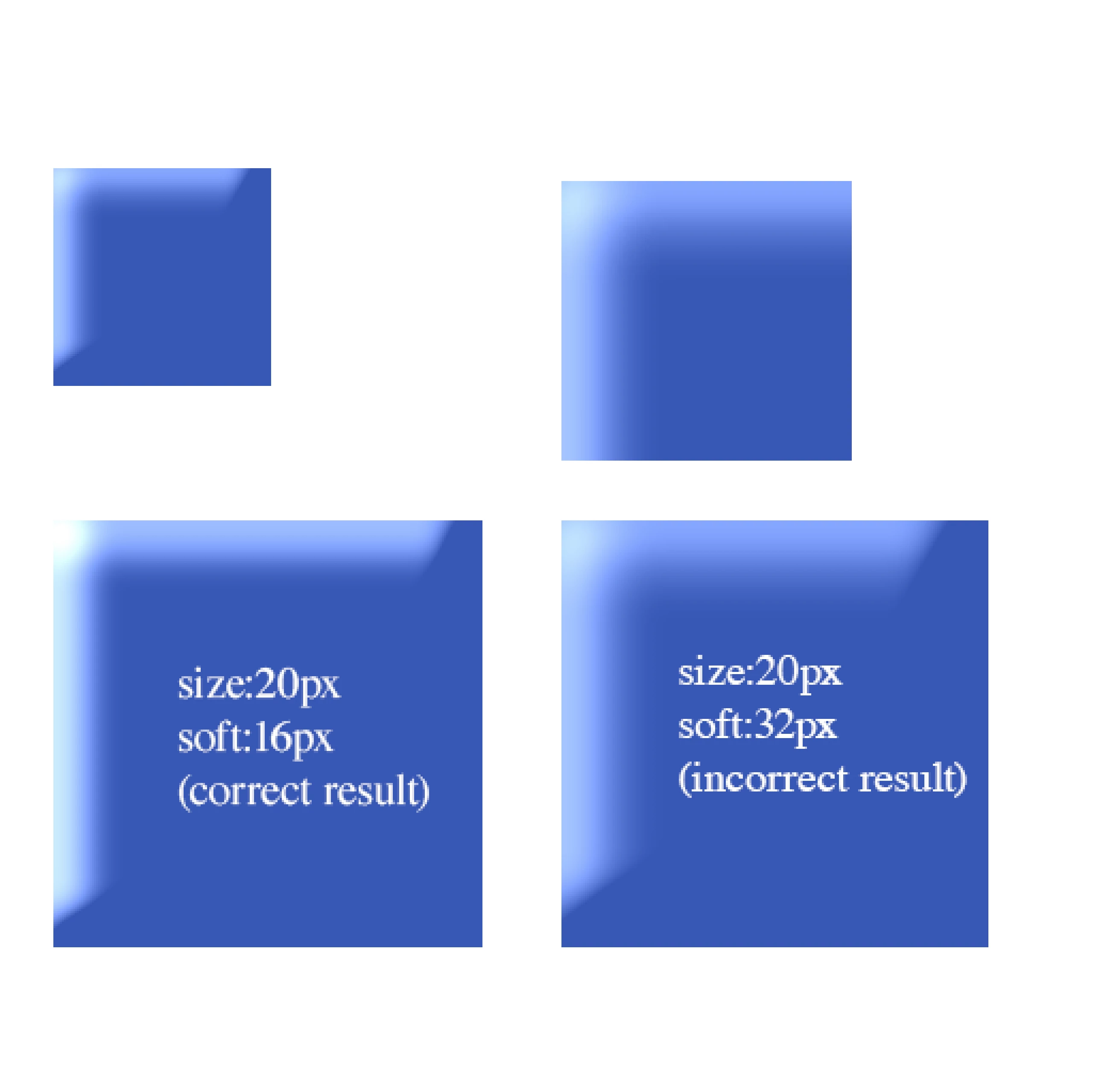 4. the maximum value of "soften" for "Bevel and Emboss" is exceeded 16. (The "soften" value at this time is estimated to be 32)