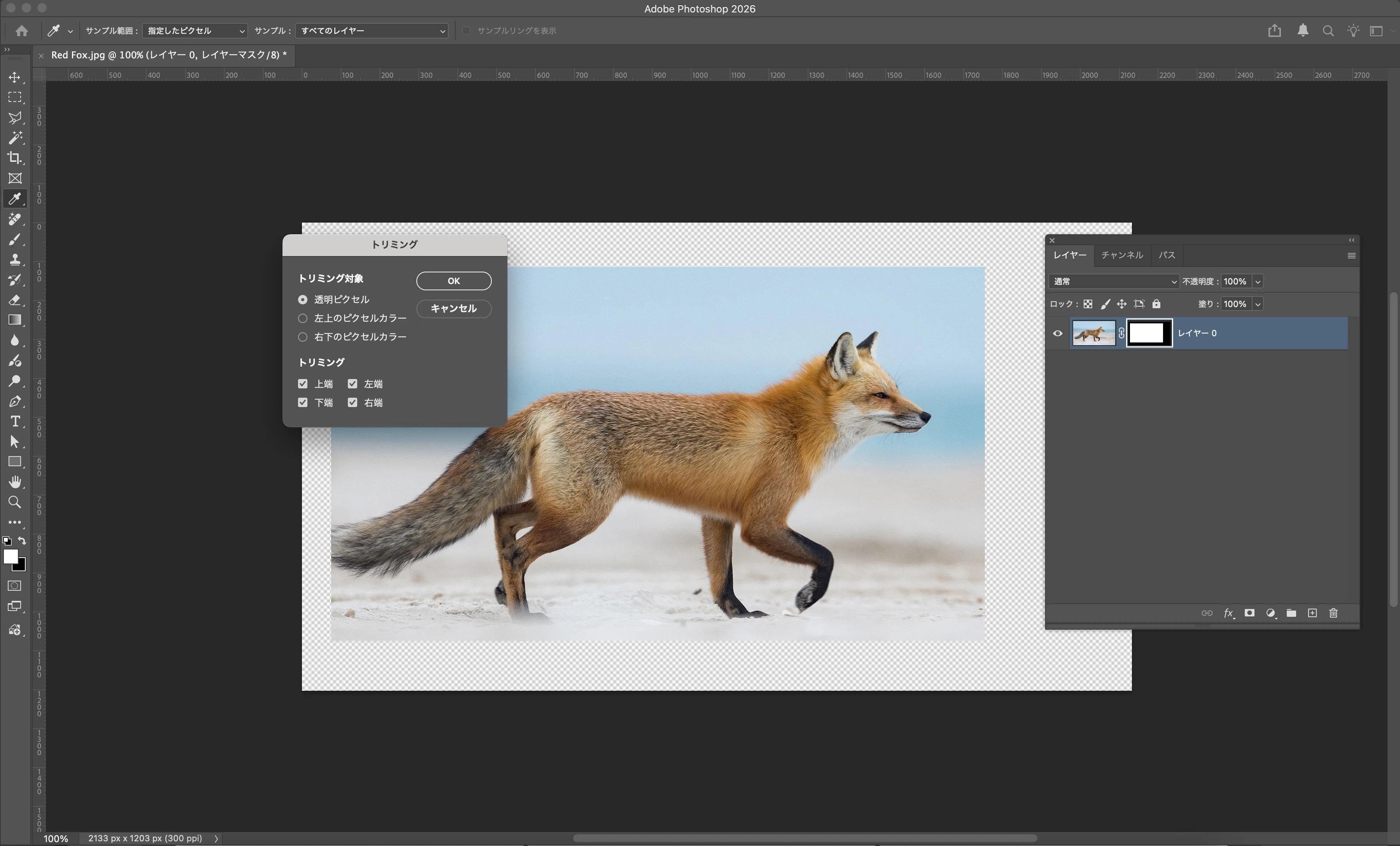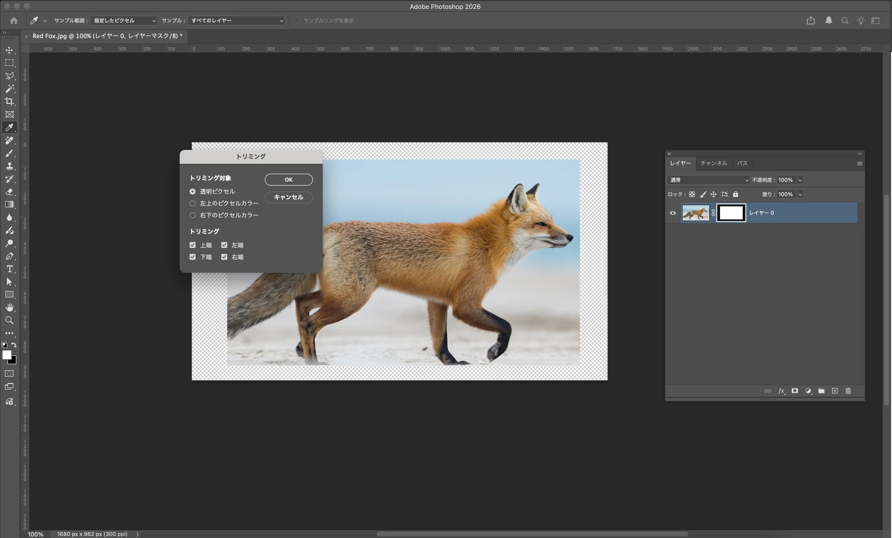 レイヤーマスクを使用した切り抜き後、透明ピクセルのトリミングを2回以上実行しようとすると、2回目以降が一切機能しない。