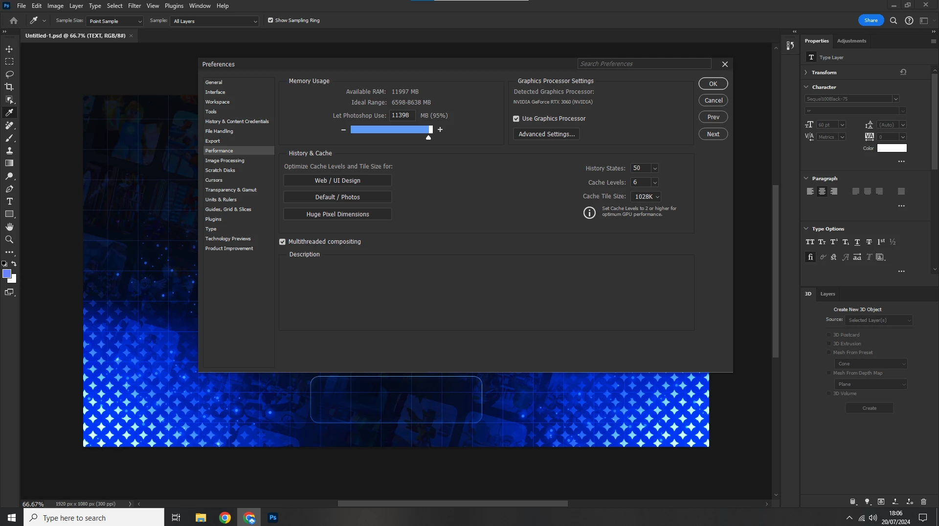 I am on the latest version of Photoshop right now and I have a RTX 3060, 16GB DDR4, 1 TB SSD.