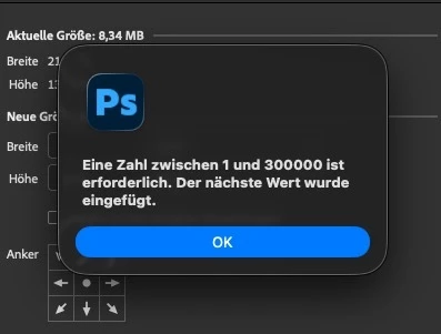 PPixel-SalloInspiringForum|Forum|1 day agoMarch 7, 2026Berechnungen in der Größe der ArbeitsflächeForum|Forum|1 day agoMarch 7, 20261 reply13 viewsHallo, es war immer möglich in der Größe der Arbeitsfläche zu rechnen.Mein Bild ist 2000 Pixel breit. Ich kann dividieren und z.B. 2000/2 schreiben und es wurde 1000 Pixel breit. Das funktioniert noch!Es ging auch bei der Multiplikation. Gebe ich nun 2000*2 ein, erhalte ich eine Fehlermeldung.