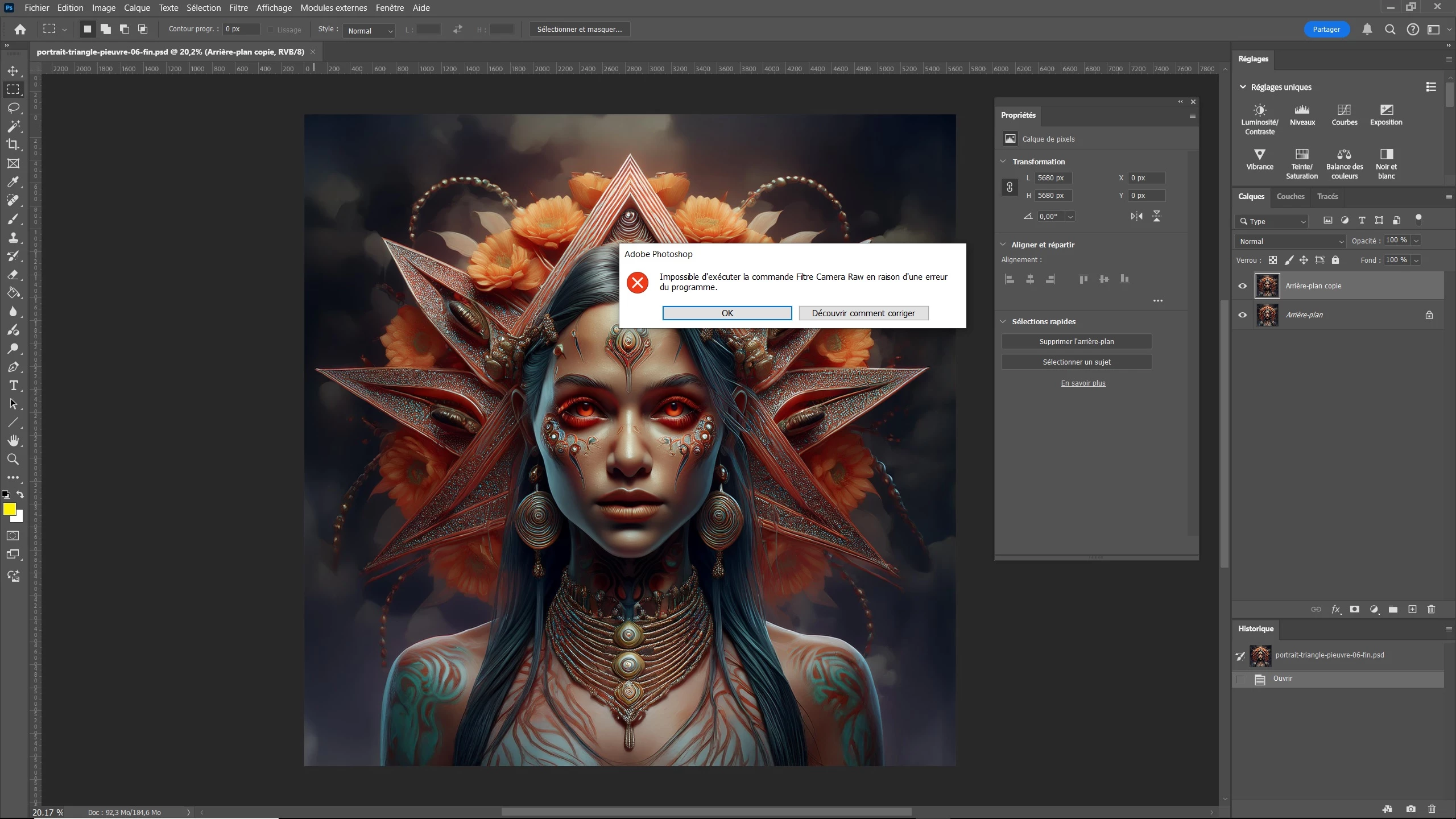 Avant et après maj, Camera raw ne fonctionne pas. Photoshop v26....