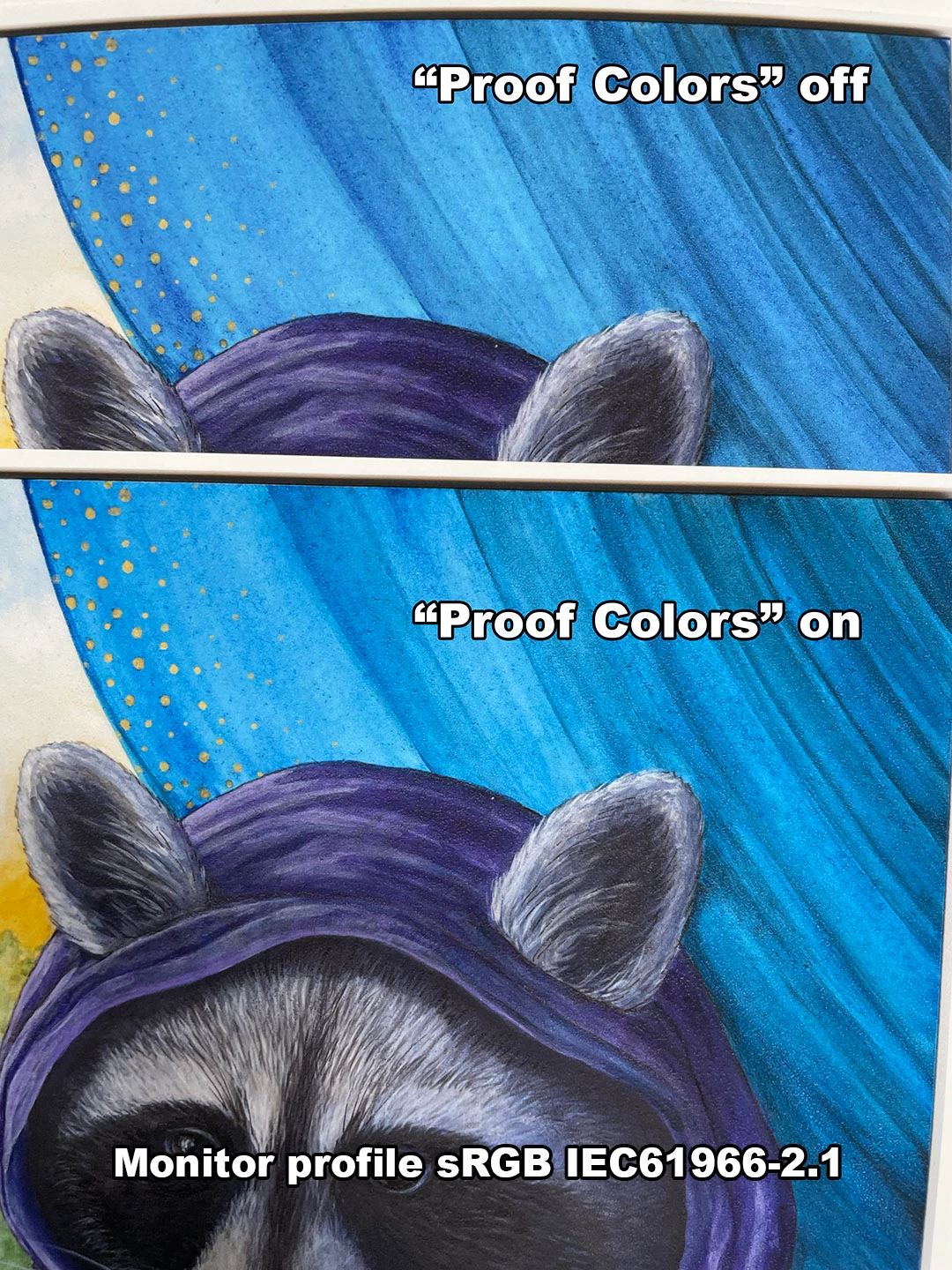 I have noticed that when toggling the "View_Proof Colors" on and off it changes the way my prints look!