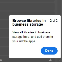 My library panel continuously resets to the front panel (not my library) and I keep running into a prompt to add libraries to my adobe apps, followed by a pop tutorial that doesn't obey the "skip" command. But my libraries are already defined as well as my workspace. It's hard to say what causes it or when, it just seems to happen often and randomly. Instead of showing the color palettes of "my library", it defaults to the previous screen showing all libraries and presents this popup for "add libraries".