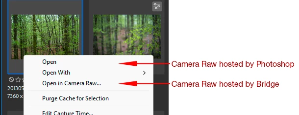 DNGs from Bridge - 3 options: - "Open" - into ACR with PS running