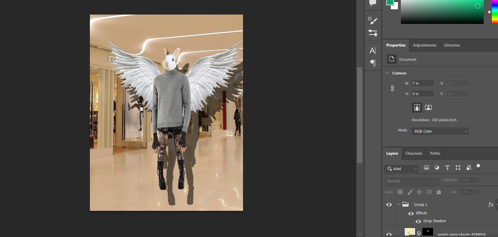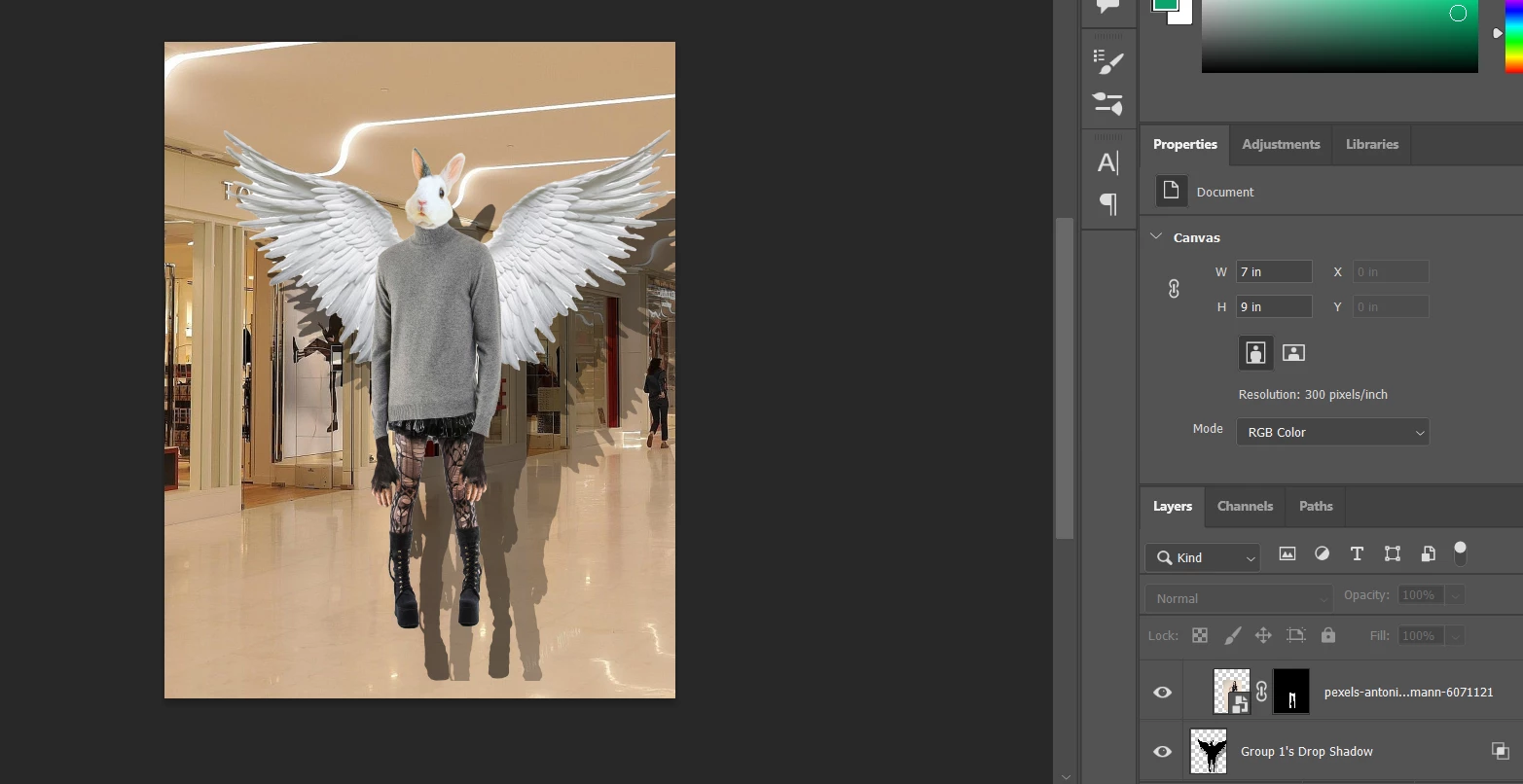 We're working on a project that I have taught many times before without issue, in which students practice with selection tools by creating a "Frankenstein" creature made up of 10 different image sources with layer masks. They then put all the body parts in a group and create a drop shadow for their creature, separate the drop shadow as its own layer and distort it to look like a realistic shadow in space.