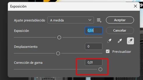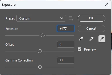 Exposure adjustment sets Gamma Correction to 0.01 automatically (Photoshop v27.x / Windows 11)