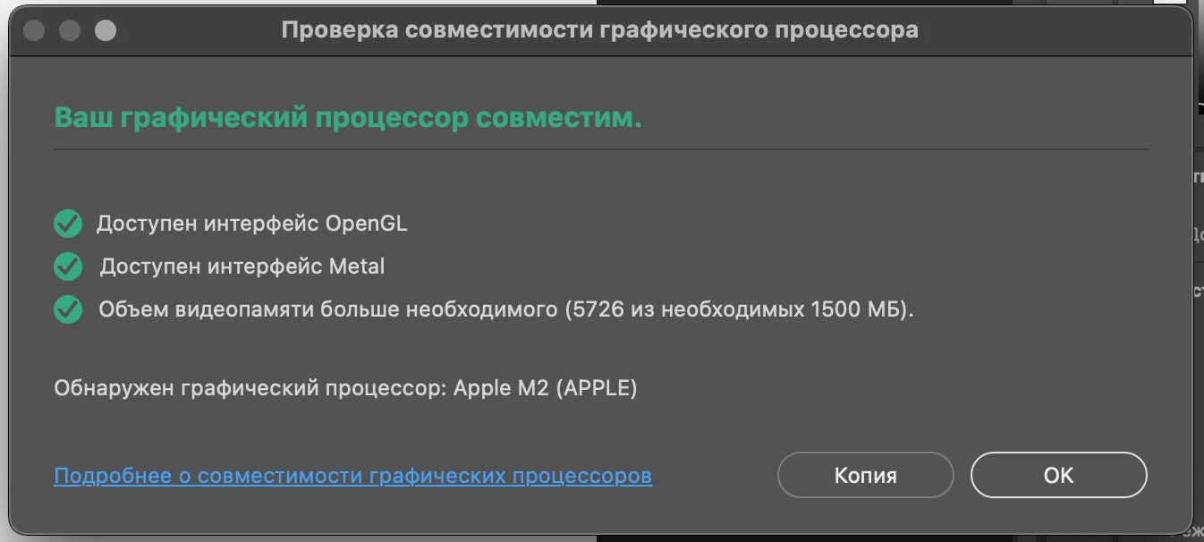 I have been using Photoshop on a MacBook Air 2022 Apple M2 laptop for over a year. I have never had any problems with the graphics processor, which is required to edit material in Camera Raw. But yesterday afternoon, the filter began to require that I enable GPU speed. GPU compatibility exists, but it still says that the system does not support Camera Raw graphics acceleration.