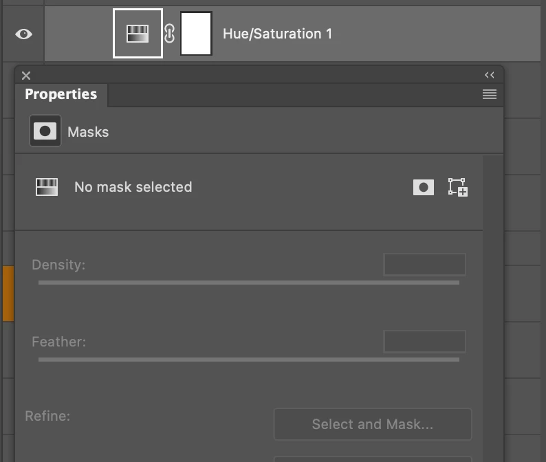 Hue Sat layers have blank properties panel