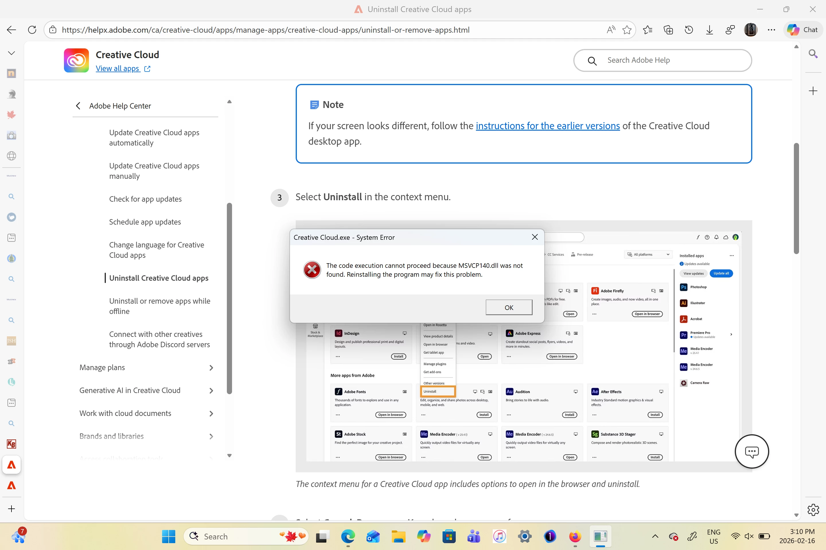 I was hoping it wouldn’t come to reinstalling MS Visual C as the various help sites suggest, but that same advice comes from an Adobe employee in this thread.