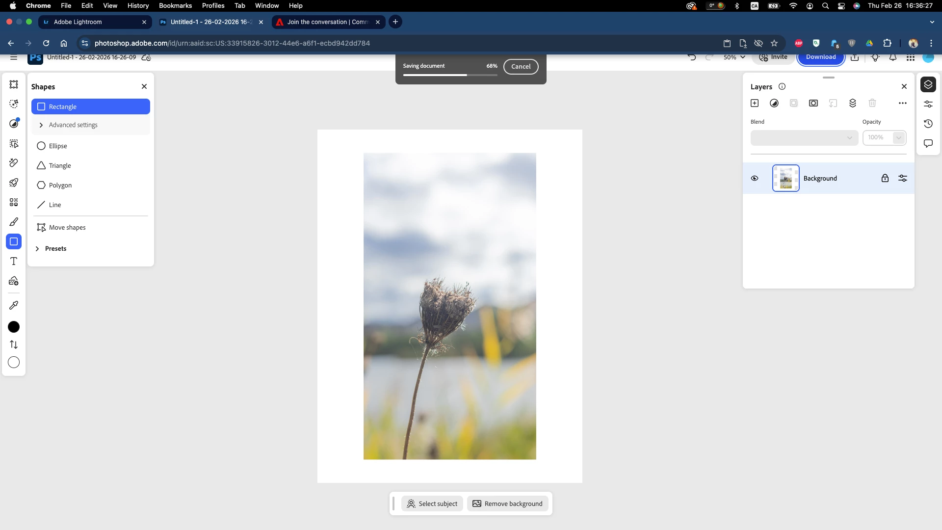 I see Lightroom is also open in another Tab. Was this image imported into Photoshop from Lightroom?