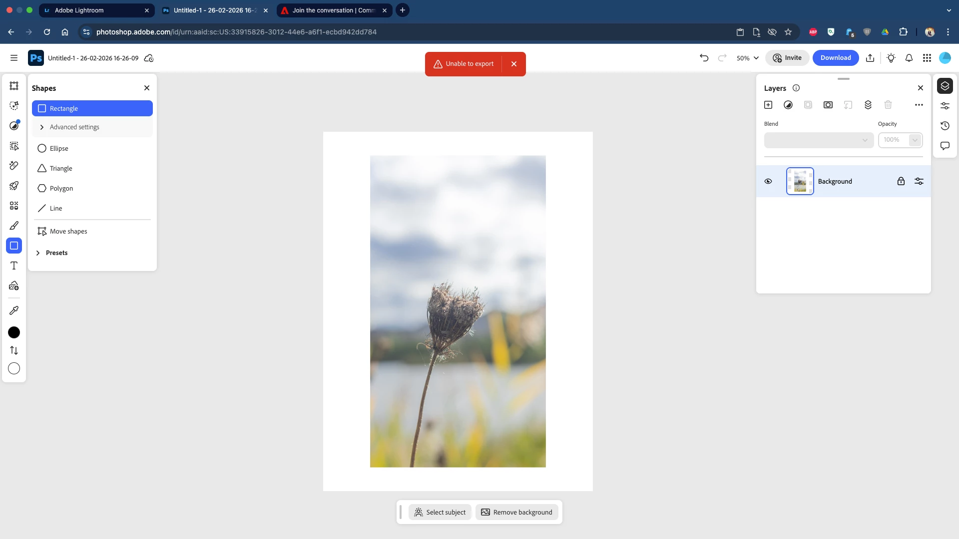 Welcome to the Photoshop Community. I just wanted to let you know I'll move this to discussions for now. Please share the browser details and whether this happens with this specific image.