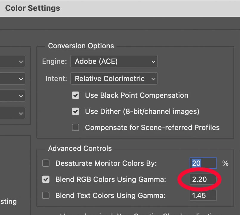 4: Set “Blend RGB Colours Using Gamma” = 2.2
