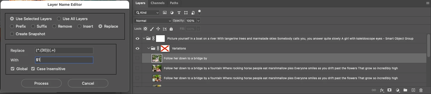 1. Need a way to bulk rename layers