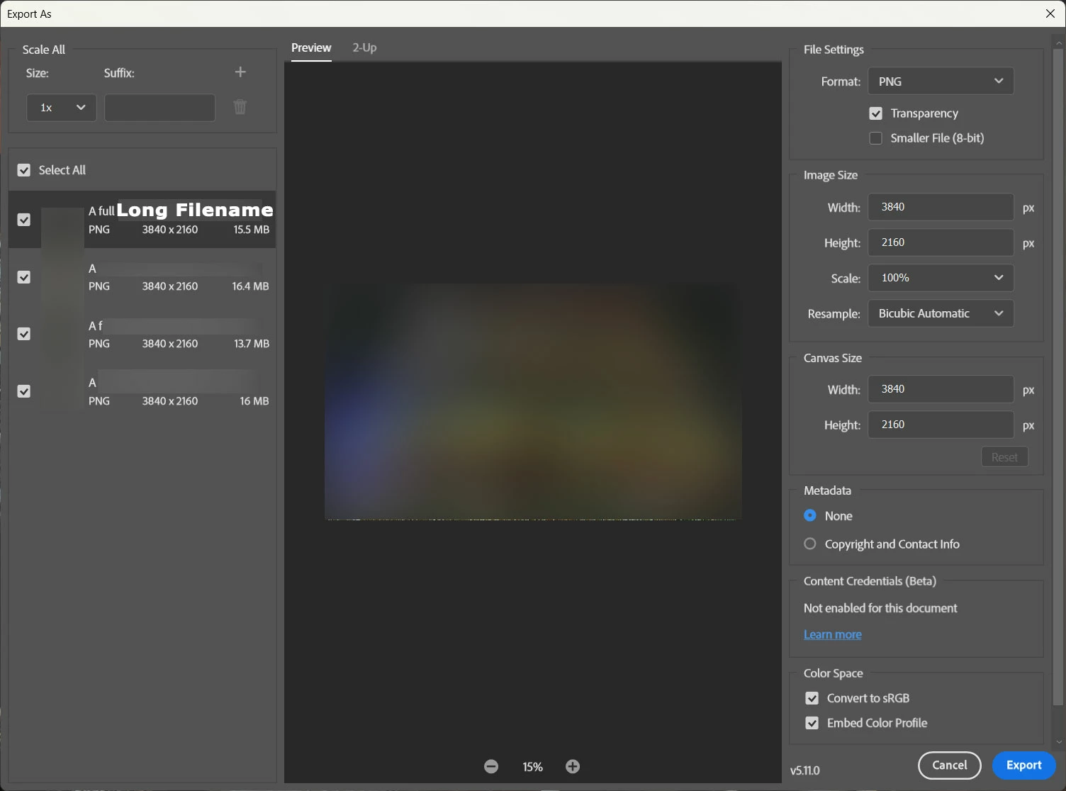 Layers from Generative Fill with Long descriptions kill the Export Process
