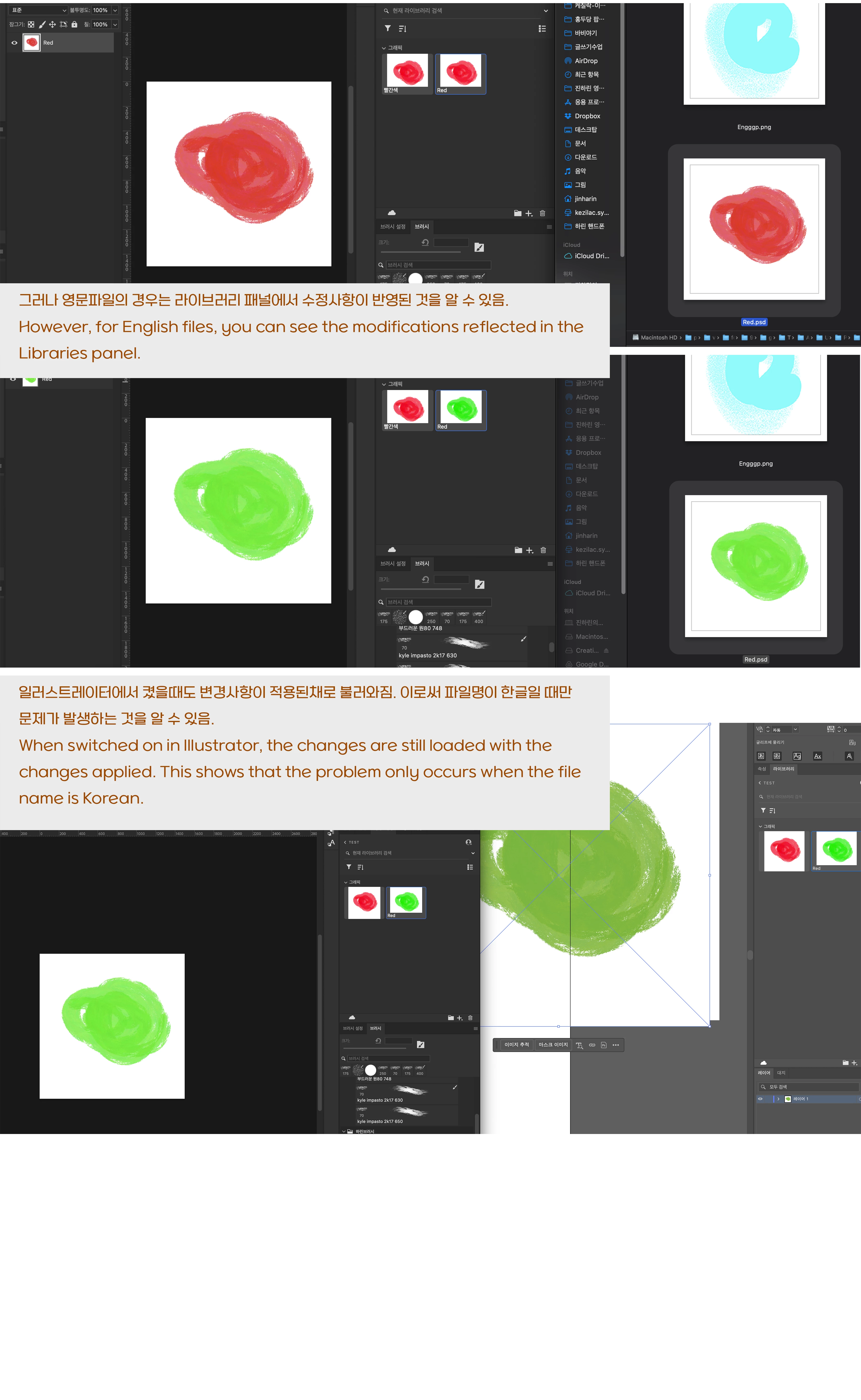 참고로 저를 도와주셨던 어도비 직원분께서도 해당 환경에서 동일한 문제가 발생하는 것을 확인하였다고 했습니다. 내부적으로도 전달을 한다고 약속받았지만, 포럼에 게제해서 빠른 피드백을 받아보라고 추천하셔서 게시물을 쓰게 되었습니다.